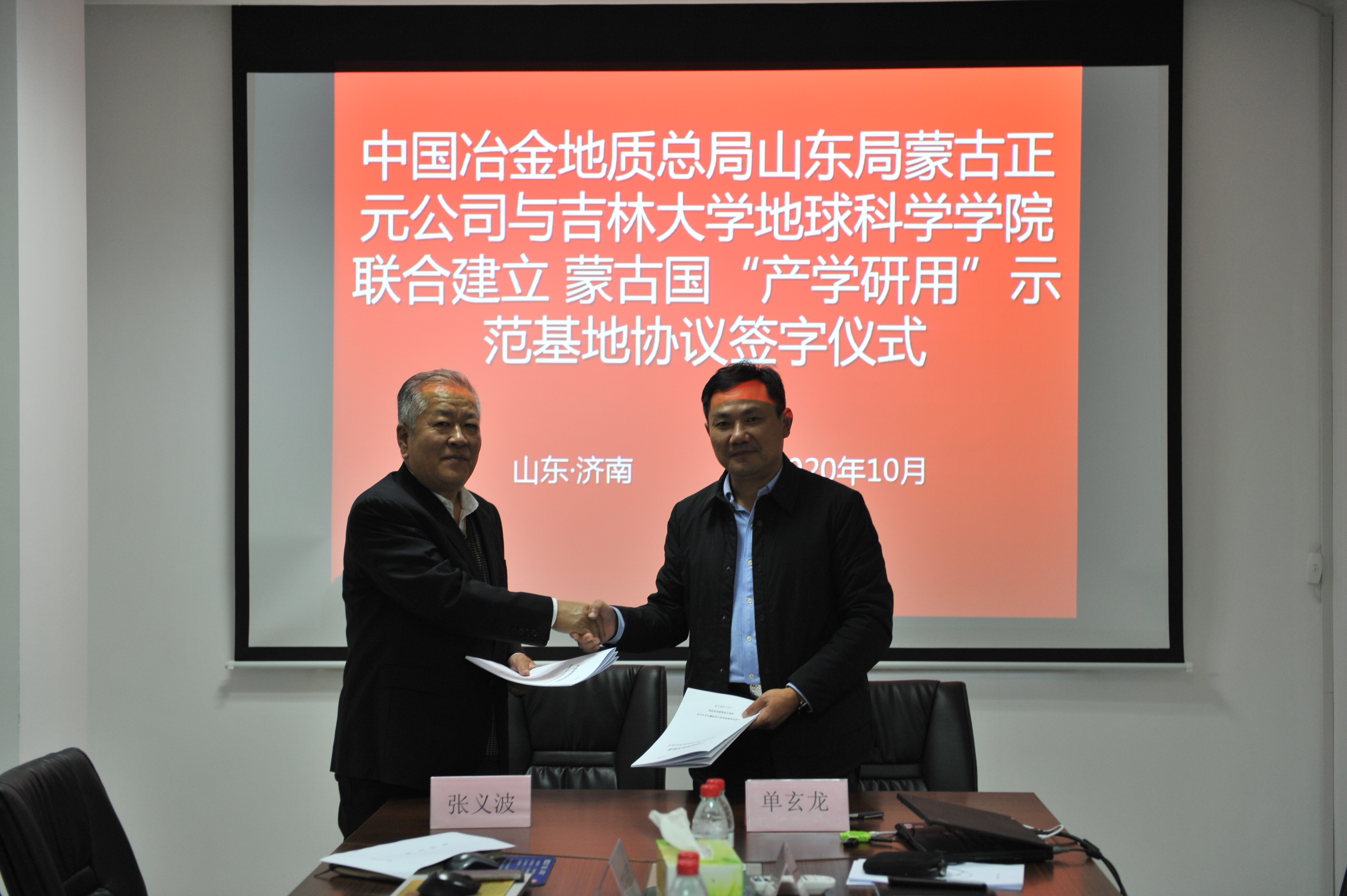 院长单玄龙、党委书记杨洲等一行三人到蒙古正元公司进行交流座谈,双方就人才培养、联合立项、地质成果研究等多个方面展开讨论并达成共识。会间,双方签署了共建蒙古国“产学研用”示范基地协议。山东局地质科技部副主任谭延斌、蒙古正元公司总经理张义波等出席会议。
