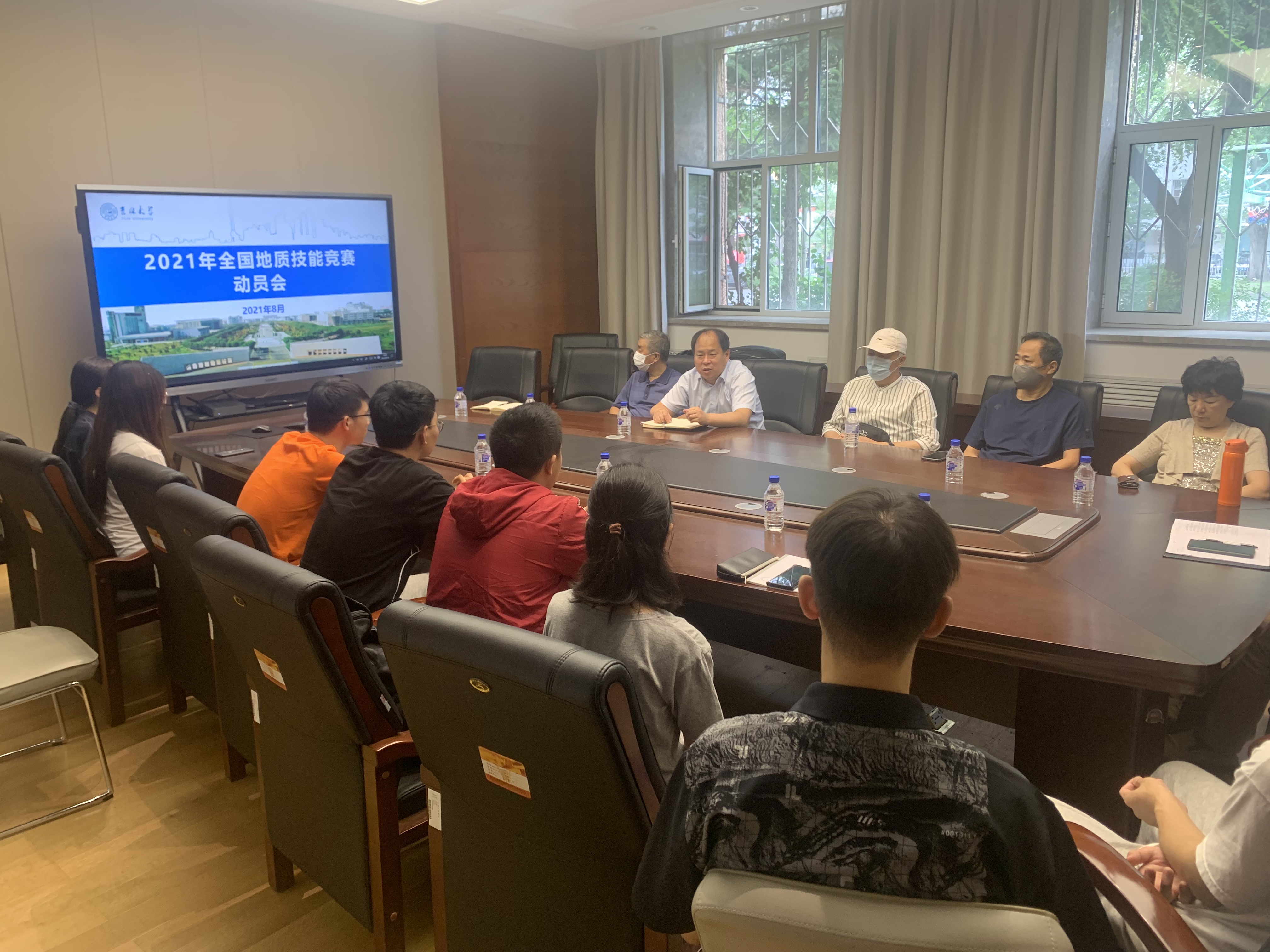 在鸽子楼109-1会议室召开第六届全国大学生地质技能竞赛动员大会,出席本次动员大会的有学院领导、专业指导教师、教务负责人以及竞赛队全体学生。动员大会由许中杰副院长主持。