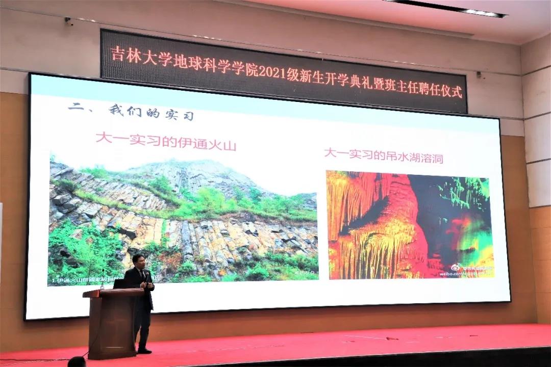 讲座伊始,单院长为同学们简要介绍了朝阳校区——这一座承载同学们大学本科生活后两年的美丽校园,展示了同学们四年内将经历的丰富的地学实习内容,包括大一长春周边实习、大二兴城实习和大三专业实习。火山、溶洞是同学们最好的老师,高原、戈壁是同学们无二的教本,多彩的地学生活使同学们向往,提升了同学们对于地学的学习兴趣。单院长还以自己学习研究时的亲身经历告诉同学们地学学习十分有趣,地学人山峦为经,岩芯作典,漫行于大地之上,探究地球脉动。