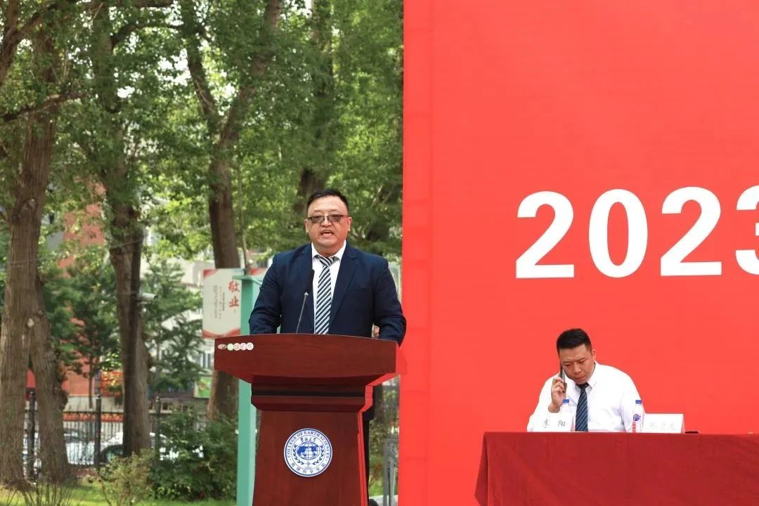 2023届毕业典礼暨学位授予仪式在鸽子楼前隆重举行,参加本次典礼的有学院领导班子成员、学院学位委员会、学术委员会、教学委员会成员、学院各系主任、各职能办公室的老师、辅导员以及全体2023届毕业生。典礼由党委副书记李阳主持。