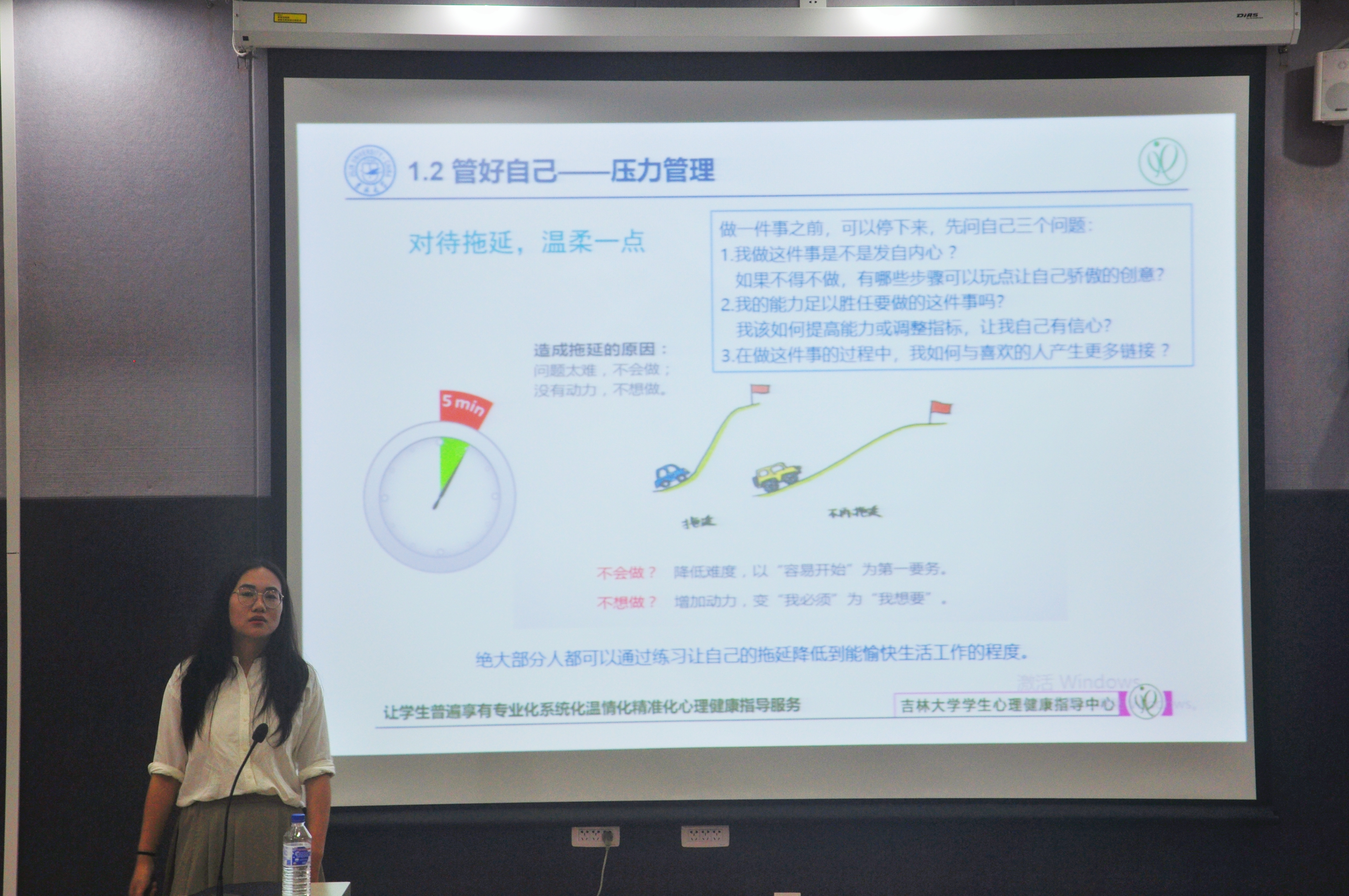 随后,张老师围绕心理健康知识的宣传普及、研究生心理健康的影响因素、增进心理健康的策略、学校的心理健康指导服务等内容,从“管理好自己”、“利用好资源”两个方面展开,强调了目标管理、压力管理和时间管理的重要性和意义,给出了如何利用知识资源、人际资源和专业资源的宝贵建议。最后,张老师呼吁同学们在遇到难以解决的心理问题时,应主动寻求帮助,借助专业的力量,黄色影片