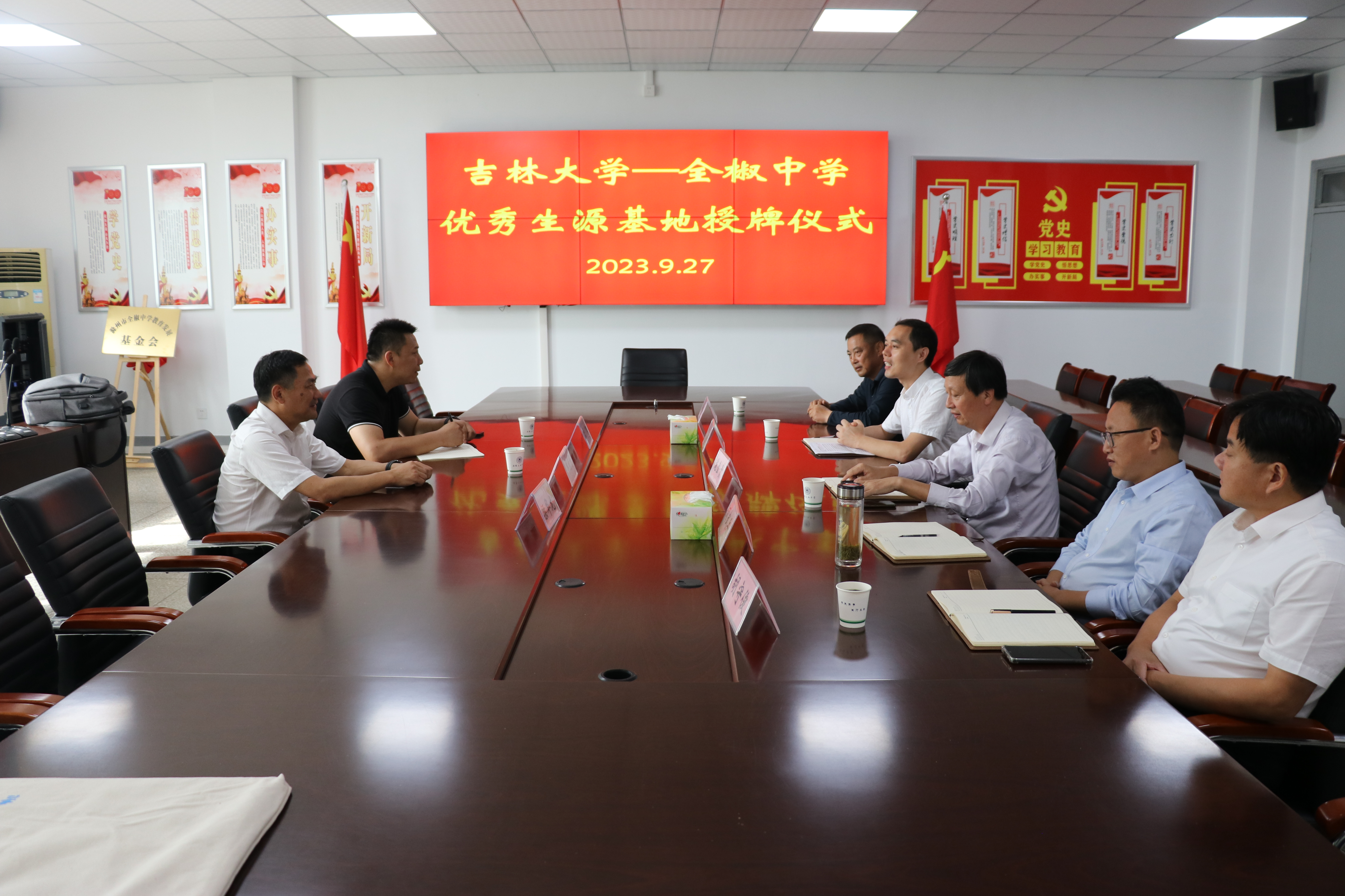 优秀生源基地”牌匾,并与到会学校领导合影留念。
