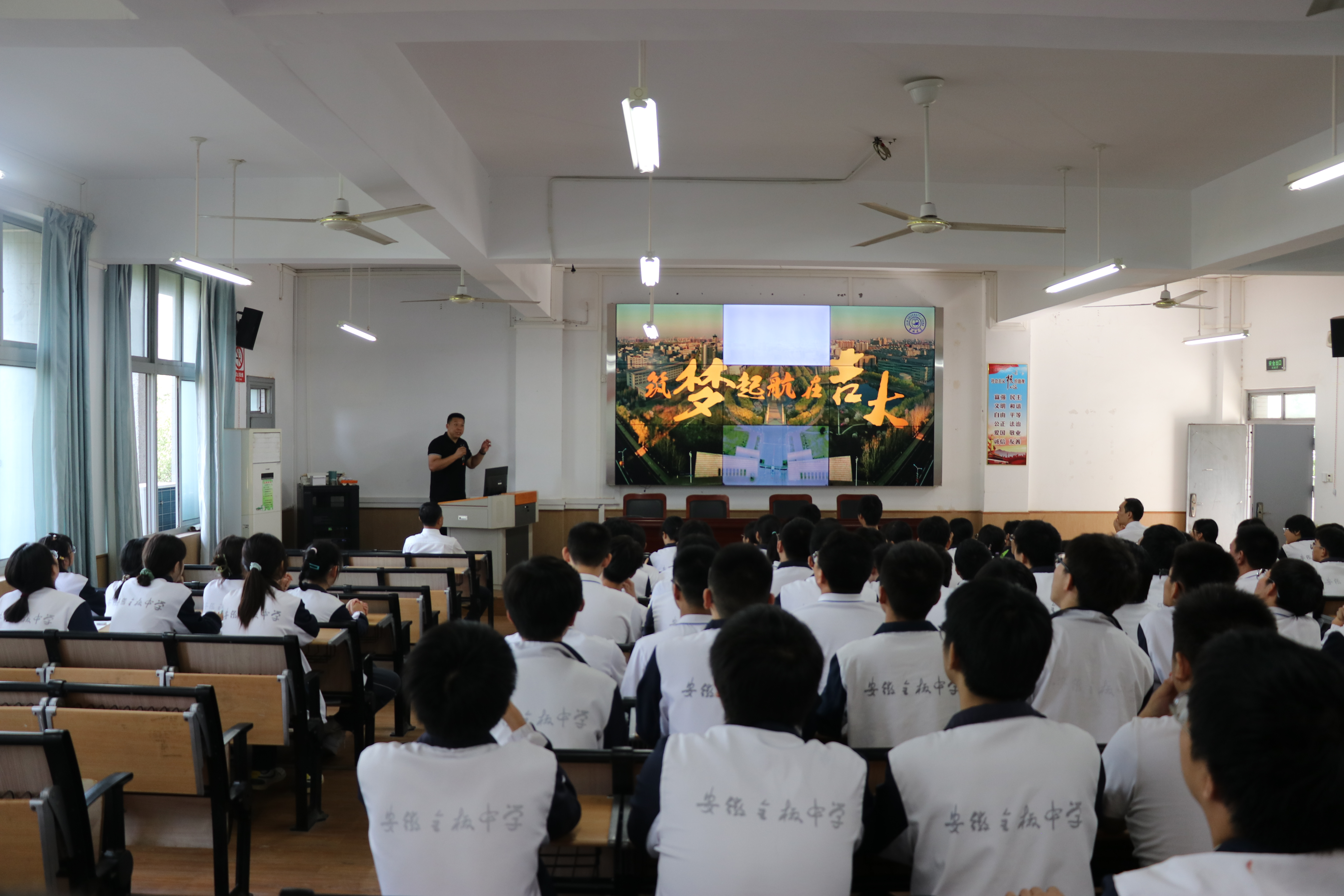 宣讲会由经闽校长主持,高三年级实验班100余名学生参加了宣讲会。与会师生观看黄色影片