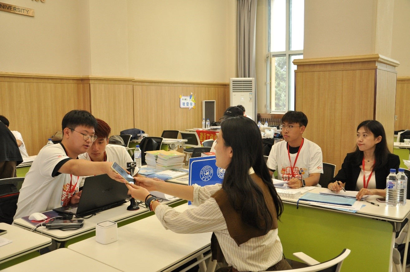 8月21日当天虽降雨不止,但学院前期已做好相关应急预案,在学校的统一安排下移步至室内确保了迎新工作的稳步进行。迎新现场气氛热烈,2024级研究生新生于五湖四海中来,满怀着欣喜与憧憬,相约吉大、相聚地科,以新生力迎接新起点、开启新“研”途。迎新志愿者分工明确、有条不紊,以饱满的热情完成了新生报到引导、人脸识别与信息核验、新生材料物品发放等工作。“同学,欢迎来到地科”“路程遥远,旅程还顺利不”,迎新志愿者用始终如一的热情、亲切体贴的温情、踏实至诚的真情温暖着每一位不远万里来到北国春城的新吉大地科人,以“一对一”的服务让新生与学院、学校之间更加贴近贴紧贴实,努力使吉大地科成为新生们的“第二故乡”。