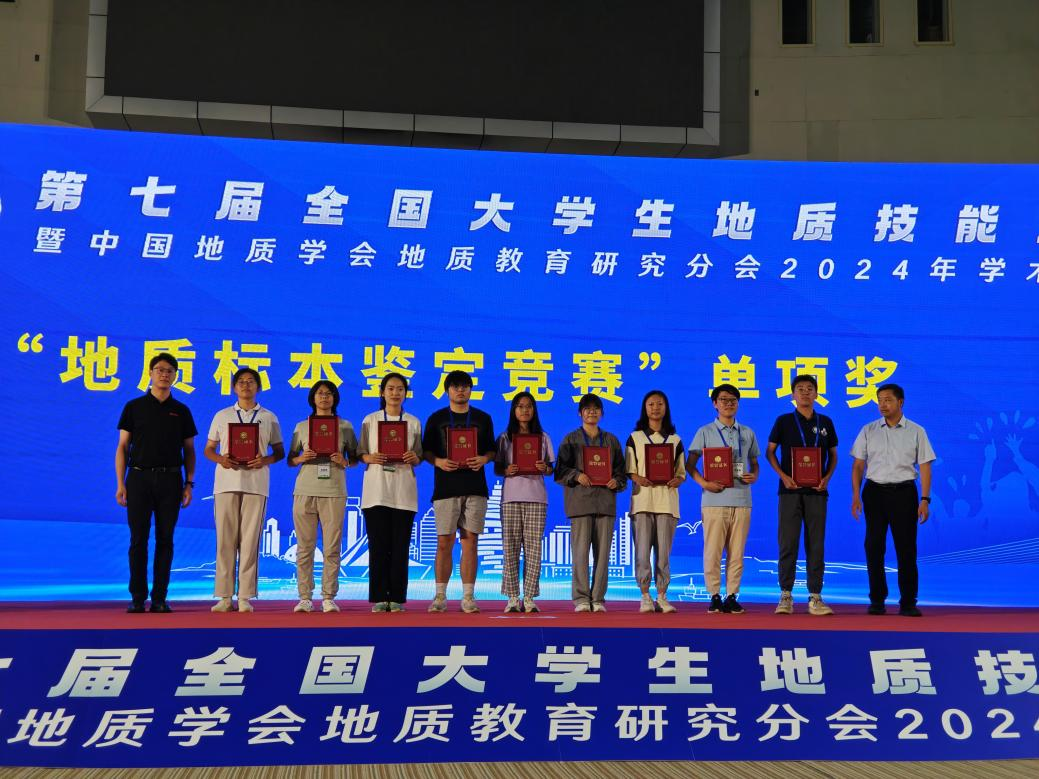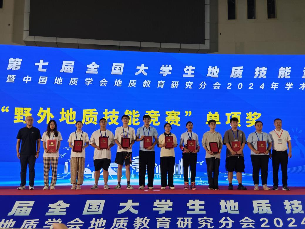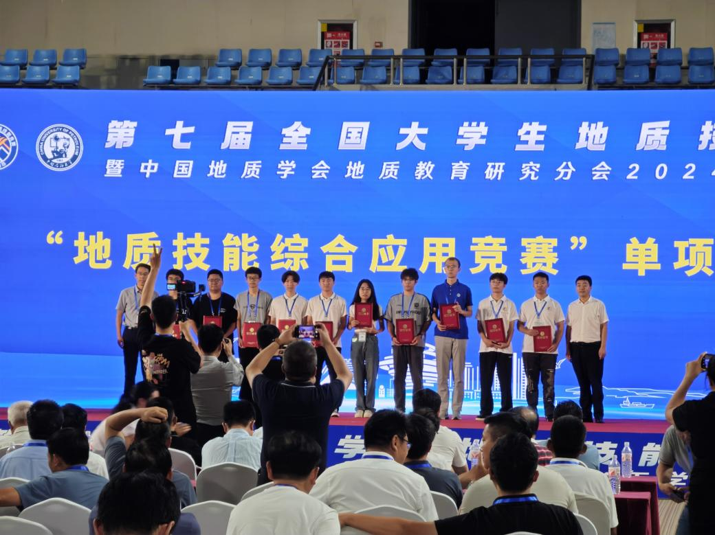 代表队在领队许中杰、带队教师高福红、李晓波、廉墨客,队员王治豪、谈话、周俊宏、柯皓文、毕研威、李婵、岳豪勃、代金韬、王薇的共同努力下,在各个环节中均表现出色,获得地质标本鉴定组特等奖2项,一等奖1项;野外地质技能竞赛组一等奖1项,二等奖2项;地质技能综合应用组二等奖3项;以优异的成绩进入地学知识竞赛环节的参赛资格。在知识竞赛中三位同学力争上游,斩获了一等奖的殊荣。本次竞赛中共获特等奖2项,一等奖2项,二等奖5项,获奖项目覆盖率达到100%,最终荣获团体奖特等奖。