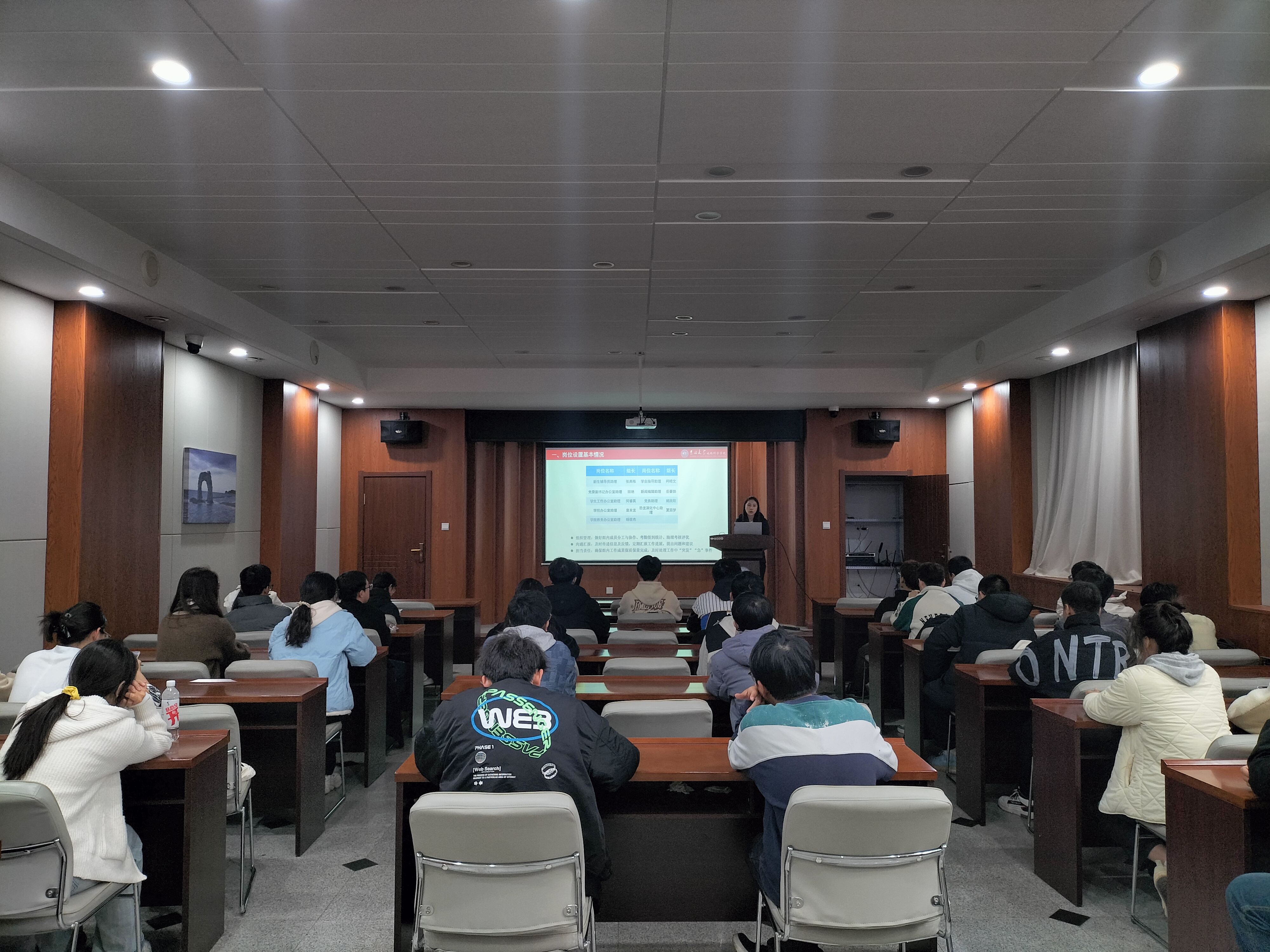 随后,韩旭老师就勤工助学基本要求进行了详细讲解,她表示,希望助理们在工作中做到“负责、认真、细致、诚实”,并提出三点要求:一是要严于律己,认真履责。二是珍惜岗位,脚踏实地。 三是要团结协作,奉献服务。此外,韩旭老师还提醒同学们注意时间管理,平衡工作和学习,提升自我综合素质,树立大局意识,展现出地科学子自强不息、奋发向上的精神风貌。