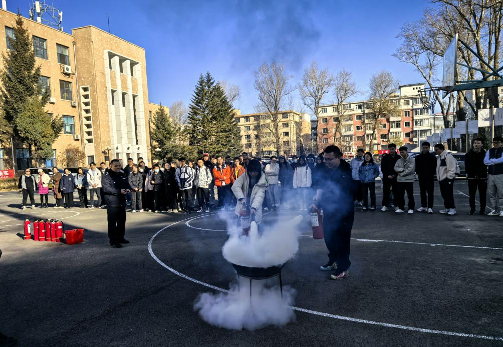 联合组织学院教职工、研究生、本科生于2024年11月13日上午在鸽子楼举行2024年秋季消防安全知识讲座及疏散逃生、消防灭火演练活动。