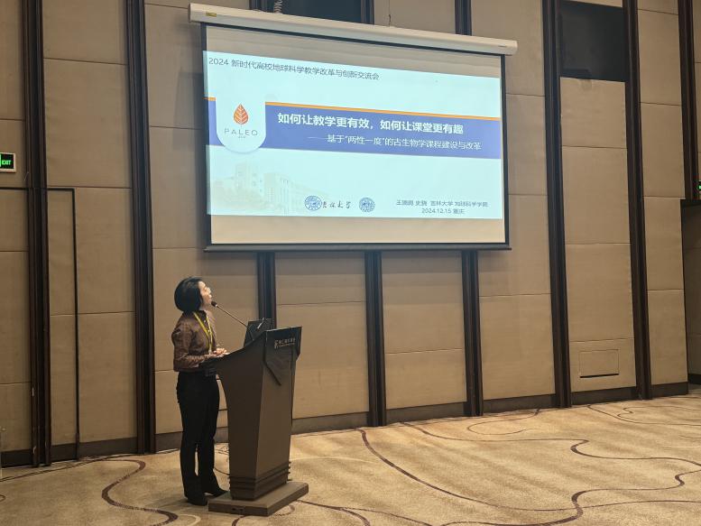 三位老师分别就各自的课程进行了精彩的口头报告交流。彭晓蕾老师以“矿石微观之美融入人才培养的实践路径——以矿相学课程教学改革为例”,展示了如何将矿石的微观美学融入人才培养的过程,为地质学教育注入新的活力。张彦龙老师分享了“基于‘使学习发生的’岩石学课程教学改革与举措”,讨论了如何通过教学改革促进岩石学课程的学习效果,提高学生的实践能力和创新思维。王旖旎老师则以“如何让教学更有效,如何让课堂更有趣—基于‘两性一度’的古生物学课程教学改革”为题,探讨了提高教学效果和课堂吸引力的方法,为古生物学教学提供了新的思路。
