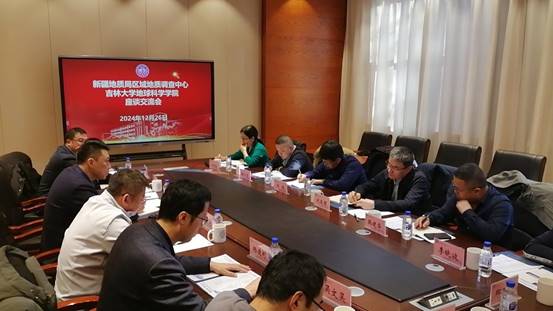 区调中心副主任韩建华、地质勘查院院长刘兵分别就各自负责的重点项目进行了详细介绍,进一步加深了双方的了解。在科研合作方面,区调中心田少亭高级工程师、宋倩倩高级工程师对已开展的《中国(新疆)— 吉尔吉斯斯坦侏罗纪生物群与化石能源地层对比研究》等项目进行了深入解读,充分肯定了与学院教师合作所取得的积极成效,并对未来合作寄予厚望。他们表示,期望借助学院强大的科研力量,进一步深入挖掘新疆丰富的化石与矿产资源,开启长期、深度、全方位的科研合作新篇章。