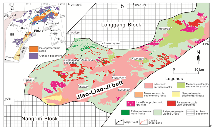 古元古代哥伦比亚超大陆裂解-汇聚过程是前寒武纪地质研究的热点。华北克拉通参与上述地质过程的记录被保留在其内部的三条古元古代造山带内(孔兹岩带、中部造山带和胶-辽-吉造山带)。其中,胶-辽-吉造山带位于龙岗地块和狼林地块之间,其在古元古代期间的构造演化过程极具争议,存在陆内裂谷开启-闭合模式、弧-陆碰撞模式及裂解-俯冲-碰撞模式等不同观点。争论的焦点集中在胶-辽-吉造山带内发育的古元古代花岗质岩石及古元古代变质沉积岩系(辽河群)的成因及构造环境上。