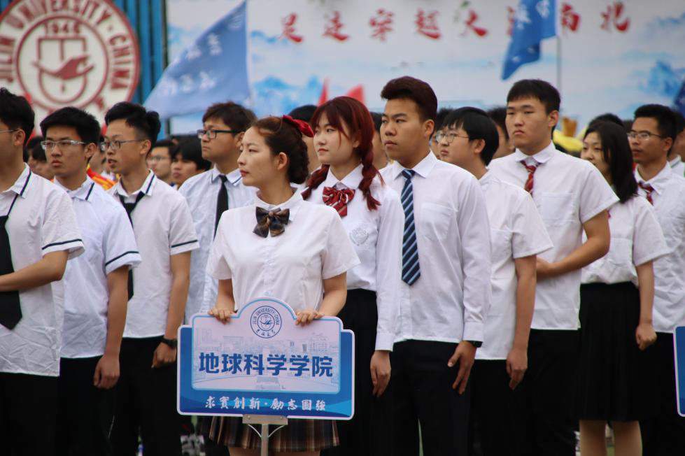 方队运动员白衣黑裤,昂首阔步,彰显了地质人勤劳朴实的精神,响亮的口号喊出了地质人不畏艰险、脚比路长的气魄。