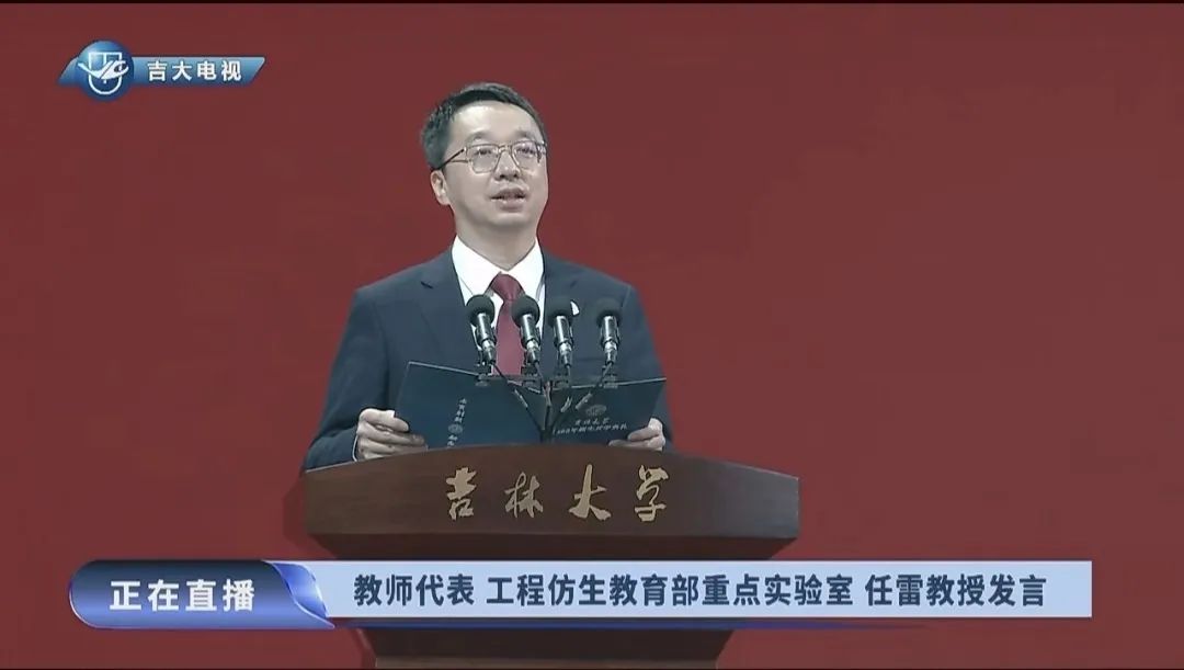 随后,教师代表、工程仿生教育部重点实验室任雷教授就同学们在大学生活中如何塑造自我,提升自我,成就自我发表讲话,他强调,同学们应该志存高远,勤学善思,多开拓视野打好基,同时老实做人,踏实做事,直面挑战以突破自我。