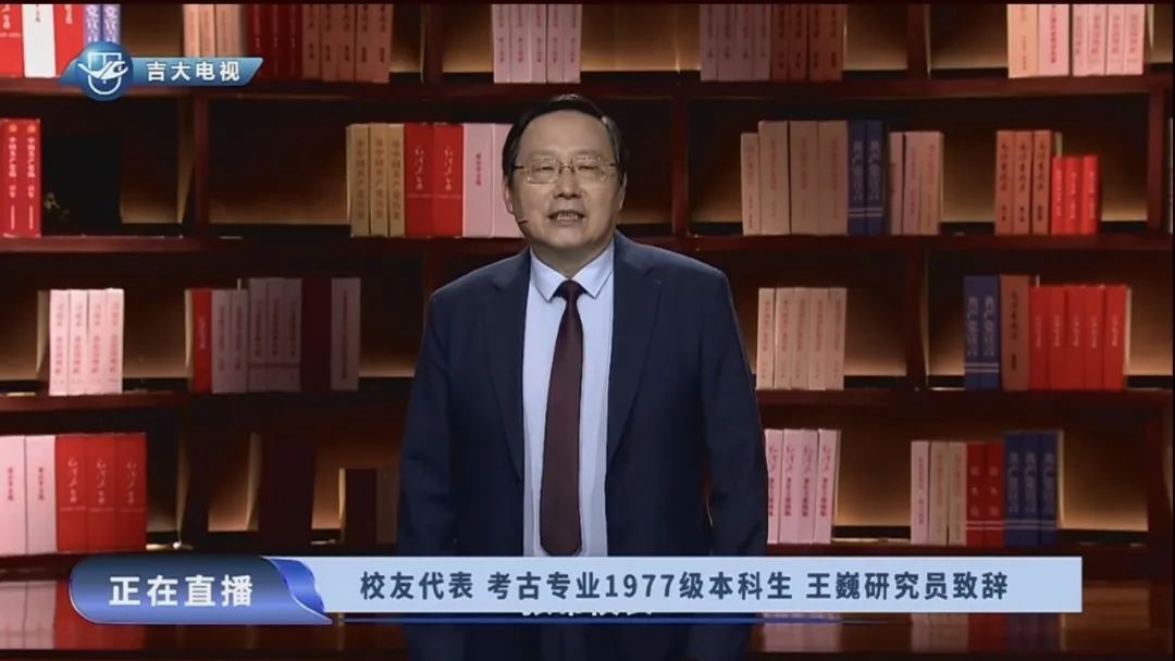 校友代表、考古专业1977级校友王巍学长则用亲身感悟告诉同学们要满怀热爱地投入到学习知识中去,带着责任感去读书实践,增长才干;要脚踏实地地踏入到科学研究中,带着使命去探索未知,追溯本源;要敢于担当地投入到祖国人民的事业中,带着自豪感去坚定自信,自主创新。