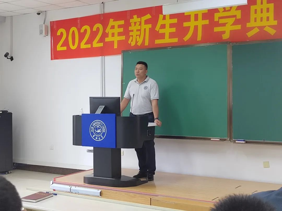 于李四光教学楼302室举行“仰望星空,脚踏实地”新生思政课,院党委副书记兼副院长李阳老师为2022级全体本科新生授课,2022级辅导员曲鹏展老师出席本次活动。