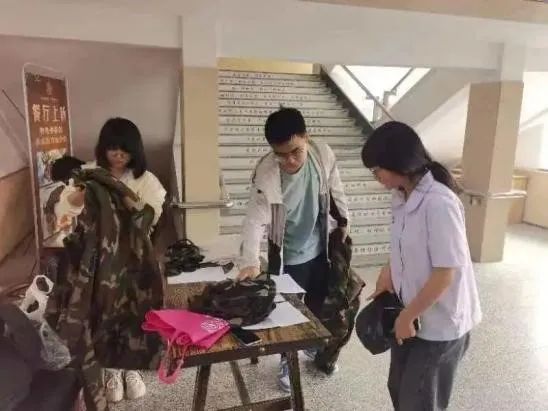 志愿者们在这两天的活动中,将同学们积极捐赠的旧军训服和各类旧衣物精心整理、分类和打包。