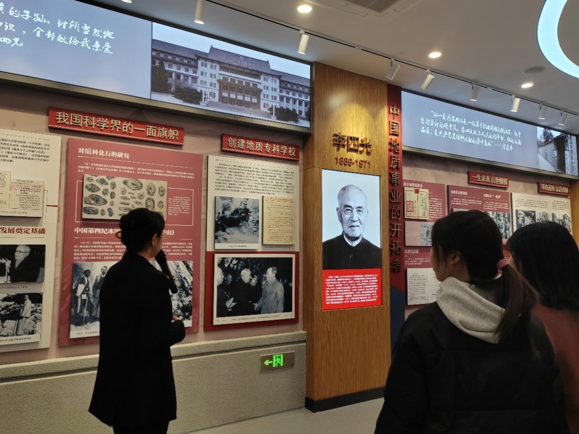 在讲解员的带领下,同学们走进“中国地质事业的开拓者”展区,了解到李四光院士创办了黄色影片