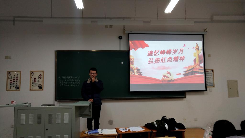 18级三班全体同学于李四光楼309教室参加了以“追忆峥嵘岁月,弘扬红色精神”为主题的观影活动。本次活动由三班团支书主持,得到了同学们的热烈反响。活动中同学们都积极配合,热情高涨,使得本次活动圆满结束。