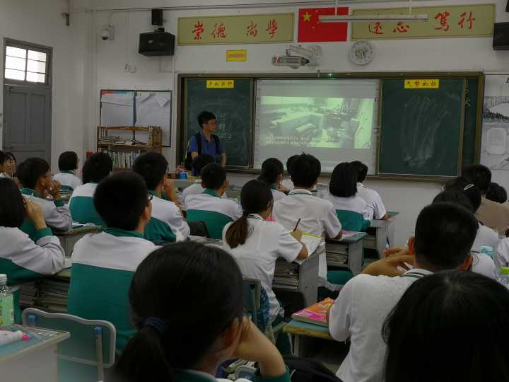 经学校安排,宣讲团队可以利用自习课的时间到高三年级一重点班中进行了以介绍吉大为主题的宣传讲座。在进行了自我介绍后,队员先利用班里的数字教学设施播放了吉大的宣传片,同时辅以一定的配合讲解,台下老师和同学们反映良好。