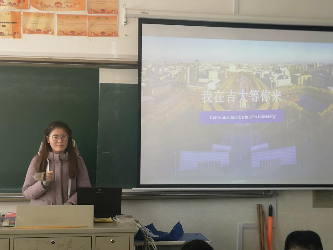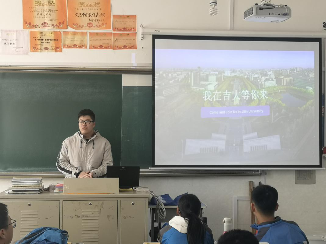 接下来团队通过PPT进行详细的介绍,从吉大简介、吉大校友、人才培养、国际合作、就业升学五个招生优势深入展开讲解,让同学们对吉大的认识更进一层。虽然学习压力很大,备考时间也很紧张,但是同学们都很认真地在听。