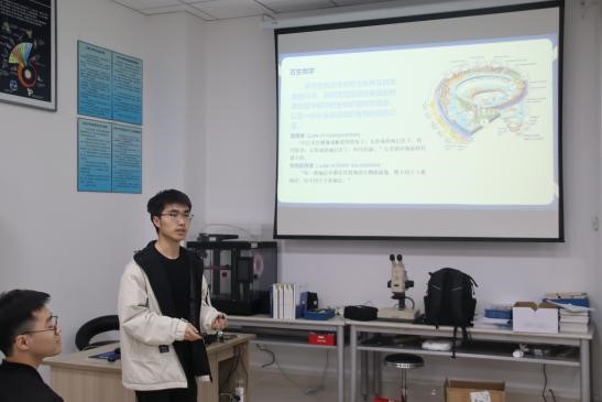 活动开始,外院同学对实验室陈列的化石标本表现出极大兴趣与热情,代金韬结合教学化石,讲解了古生物、化石、化石的类型等古生物基础知识,并解答外院同学的问题。