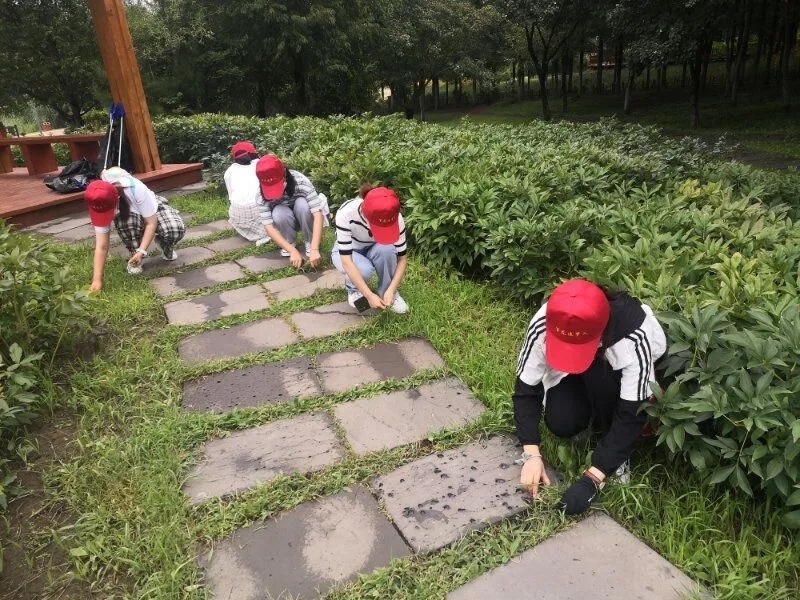清扫活动结束后,同学们倒掉园区垃圾,跟随工作人员回到工具间,拿上除草铲前去进行另一项志愿活动:除草。百花园环境优美,但也需要悉心养护,路径两旁的杂草长的较快,需要及时清除,防止杂草与种植的植物争夺营养、以及遮挡道路。同学们在工作人员的指导下投入到劳动中来。并与花园的劳动人员进行了亲切交流,劳动人员也对吉大学子有着很高的评价。