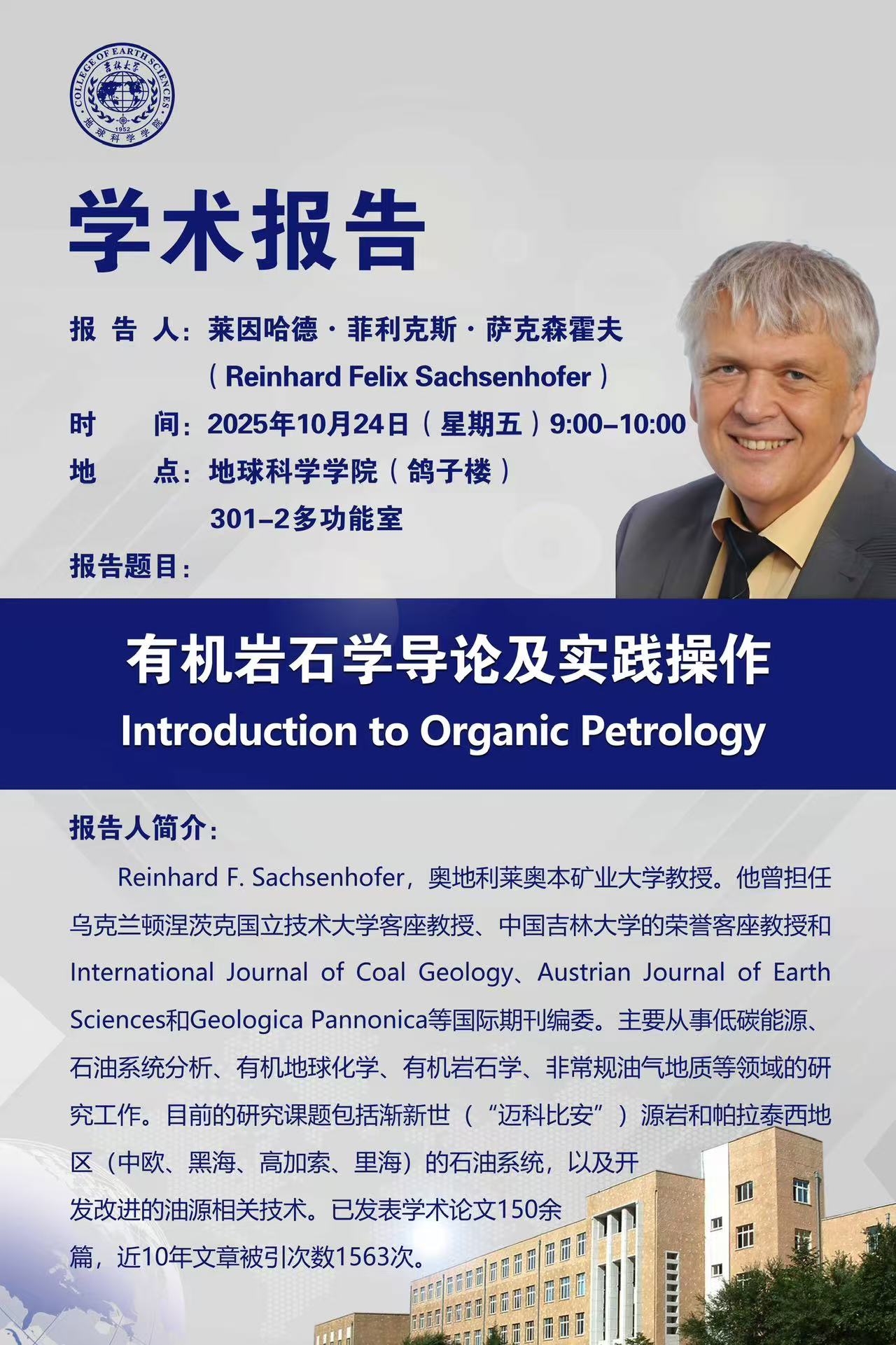 奥地利莱奥本矿业大学Reinhard F.Sachsenhofer教授学术报告