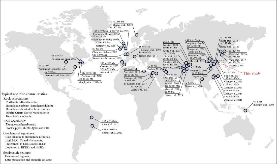 水作为地球深部的重要挥发分,在岩浆形成、运移和冷凝过程中扮演着关键角色。角闪石是大陆岩石圈地幔中最常见的含水矿物之一。富闪侵入岩因发育高含量(多数≥50 vol.%)的角闪石,通常是富水的玄武质岩浆冷凝结晶的天然样例,同时因其具有基性岩浆的地球化学属性,也是富水岩石圈地幔部分熔融的典型产物之一。富闪侵入岩的成因如何?它们反映的岩石圈地幔深部过程如何?这些问题并没有得到很好的解决。