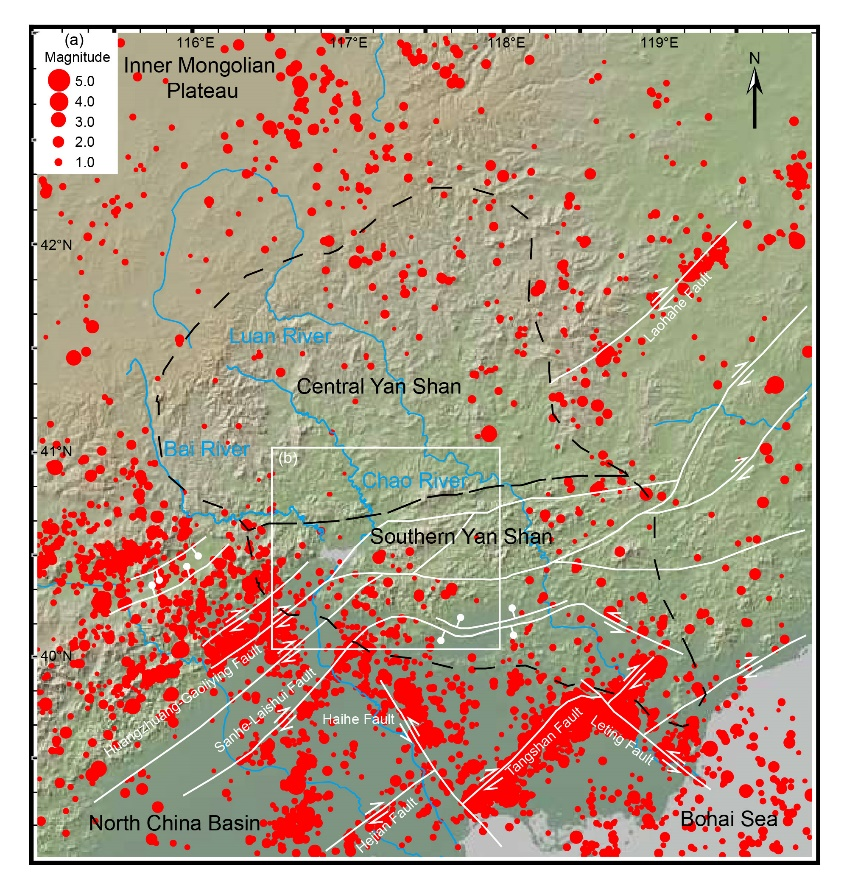 华北地区是全球板内地震活动最为活跃的地区之一,特别是华北平原地区,发生过诸如1679年三河-平谷8级地震,1966年邢台7.2级地震,1976年唐山7.8级地震等强烈地震,近千年来6级以上地震超过20次,造成了严重的人员伤亡和财产损失。然而,临近华北平原的燕山中部地区,历史地震记录却十分稀少。那么,燕山中部地区这种稀少的历史地震记录,究竟是反映了该地区相对平静的新构造活动,还是因为历史地震记录时间尺度不够长而产生的记录偏差?